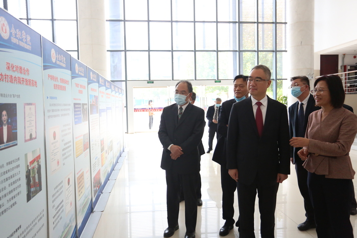 安徽省政府副秘書長、省政府政研室主任葉曉明,中共安徽省委教育工委副書記、省教育廳廳長趙振華,合肥市委常委、副市長路軍,省外事辦公室副主任王年寶,省政府辦公廳副主任金宗順,中共安徽省委教育工委委員、省教育廳副廳長張庚家,安徽大學(xué)黨委書記蔡敬民等陪同參觀。(黨委宣傳部