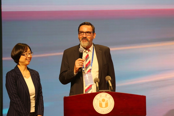 國際儒學聯合會副會長、漢學家、哥廷根大學施寒微教授圍繞“中德的學術合作”作報告。他提出,要加強中德雙邊理解與合作,共同推動兩國經濟、文化、教育等各方面的發展。他表示,隨著中國的高速發展,中國文化被世界廣泛關注,而中國也在保留自己的特色文化的基礎上,秉持開放包容、兼收并蓄的多元一體格局,不斷吸收借鑒異域、異族文化中的優秀成果,始終堅持與其他國家和民族開展跨文化交流。他表示,德方會更深入地了解中國文化,與中國建立平等友好的合作關系。