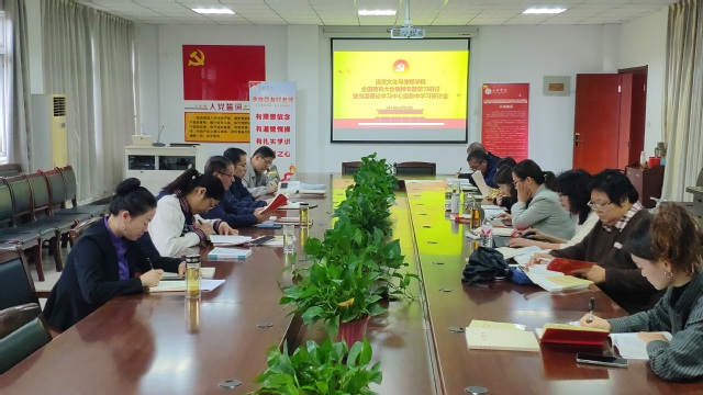 1022日,語言文化與傳媒學院黨委理論學習中心組在學院大會議室舉行學習會,專題學習習近平總書記考察安徽重要講話精神和全國教育大會精神,學院領導班子成員、黨委委員、紀委委員、科級干部及各黨支部書記、系(中心)主任參加,會議由院黨委書記儲昭輝主持。