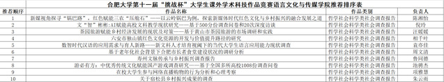 語言文化與傳媒學院“挑戰杯”大學生課外學術科技作品推薦順序公示