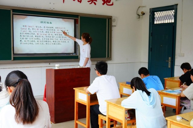 教育是社會進步的基石,是國家和民族繁榮昌盛的源泉。202476日,語言文化與傳媒學院“文脈傳承,助農興村”暑期“三下鄉”社會實踐團隊中的教學組細分了國學組、英語組和書法組,旨在激發孩子們對傳統文化的的興趣。雖然室外烈日炎炎,但教室內充滿了歡聲笑語,一場場生動有趣的教學課堂在石板沖鄉初級中學的教室里如火如荼地進行著。