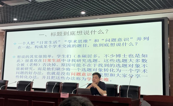 在介紹“學(xué)術(shù)思維”時,操瑞青教授倡導(dǎo)以更為全面的視角看問題,避免對問題的簡單化、片面化處理,力求挖掘問題背后深層內(nèi)涵與邏輯。同時,指出有必要回溯歷史,去探尋現(xiàn)象之所以成為現(xiàn)象背后的過程。