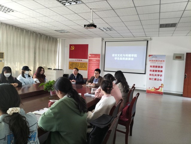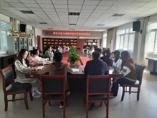 為了更好地開展學生組織工作,推動學生會等組織的高質量發展。328日中午十二點十分,語言文化與傳媒學院在一區善思樓C座二樓會議室召開了語言文化與傳媒學院學生組織座談會。此次會議由語言文化與傳媒學院團委負責人劉政主持,黨委書記儲昭輝出席,學生會、新媒體中心、志愿者協會以及藝術團等組織的學生骨干參加。
