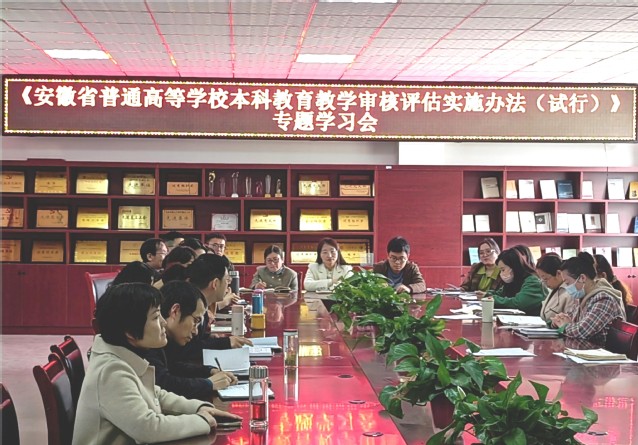 學習會上,學院領導帶領全院教師深入學習文件精神,丁增武院長強調,要認真對照《安徽省普通高等學校本科教育教學審核評估實施方案(試行)》、《安徽省普通高等學校本科教育審核評估指標體系(試行)》等文件要求,結合學院教育教學工作實際,切實落實學校工作要求,提前布局,認真準備,以評促建、以評促改、以評促管、以評促強,積極推進自覺、自省、自律、自查、自糾的人才培養質量文化構建。儲昭輝書記指出,必須把牢社會主義辦學方向,把立德樹人融入審核評估全過程,積極構建“三全育人”格局,“五育并舉”培養擔當民族大任的社會主義建設者和接班人。在學習研討中,殷明明副院長指出,必須堅持立德樹人根本任務,緊扣本科教育教學改革主線,堅持問題導向,強化學生中心、產出導向、持續改進,落實“以本為本”、“四個回歸”,以評估理念領發展、評估舉措促改革、評估標準驗實效,努力促進學院教育教學工作高質量內涵式發展。
