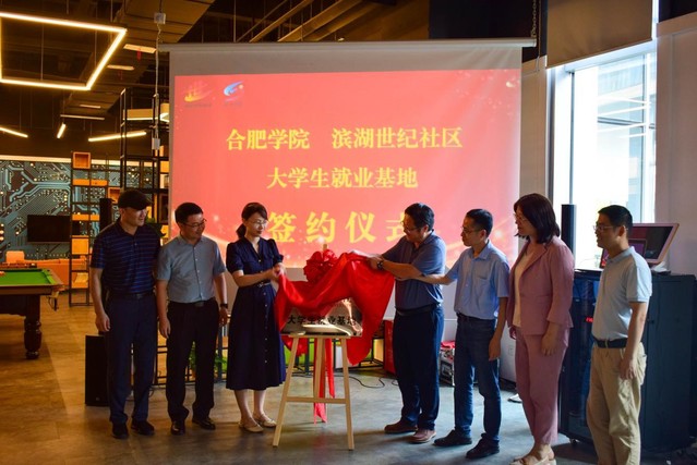 最后,合肥學(xué)院宣傳統(tǒng)戰(zhàn)部部長賈峰與包河區(qū)團(tuán)區(qū)委書記吳曉雯共同為“大學(xué)生就業(yè)基地”揭牌。語言文化與傳媒學(xué)院黨委副書記張愛萍代表我院與濱湖世紀(jì)社區(qū)黨委副書記倪偉共同簽訂了“就業(yè)實(shí)習(xí)基地”協(xié)議。