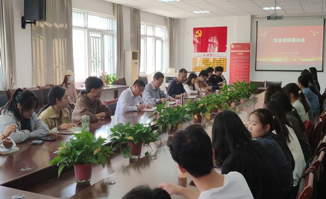 為深入踐行“一線規則”,切實發揮社區“三全育人”功效,有效掌握新生思想動態、收集新生意見建議,2023112日下午,校關工委常務副主任鄭永紅、秘書長劉玉培、學生處資助中心汪清漣老師一行在語言文化與傳媒學院會議室召開學生調研座談會。語言文化與傳媒學院黨委書記儲昭輝、學工辦主任顧盼盼、教育學院分團委副書記張弦樂以及兩個學院20名新生代表參加了本次座談會。
