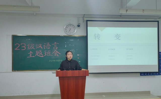 11月8日晚18:30,在語言文化與傳媒學院黨委副書記、23級漢語言文學專業輔導員張愛萍老師的指導下,語言文化與傳媒學院23級漢語言文學專業“新生角色轉換”主題班會于一區善思樓C座307教室成功召開。本次活動由23級漢語言二班班長方妍主持,23級漢語言文學全體新生參加。