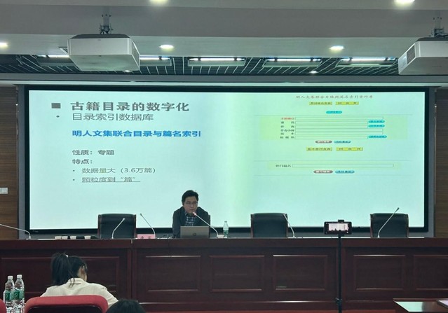 本次講座分為三個(gè)部分展開(kāi):第一,數(shù)據(jù)庫(kù)與古籍的數(shù)字化;第二,數(shù)據(jù)庫(kù)與古籍?dāng)?shù)據(jù)的結(jié)構(gòu)化、智能化;第三,數(shù)據(jù)庫(kù)與文獻(xiàn)學(xué)研究的生態(tài)革命。在第一部分當(dāng)中,唐宸教授分別介紹了古籍版本和古籍目錄的數(shù)字化,并且分點(diǎn)分塊地對(duì)古籍版本中的影像型和檢索型的數(shù)據(jù)庫(kù)、古籍目錄中的目錄索引數(shù)據(jù)庫(kù)進(jìn)行了詳細(xì)講解,讓我們對(duì)于古籍?dāng)?shù)據(jù)庫(kù)的性質(zhì)、特點(diǎn)、分布等有了更深的了解。此外,還提出了古籍?dāng)?shù)據(jù)庫(kù)目前面臨的五大迫切問(wèn)題。在第二部分中則向我們?cè)敿?xì)講解了關(guān)系型、空間型、生產(chǎn)型、綜合型等四類數(shù)據(jù)庫(kù)的基本特點(diǎn)與風(fēng)格。第三部分中提出了在未來(lái)對(duì)古籍?dāng)?shù)據(jù)庫(kù)的管理構(gòu)想,既做加法又要做減法,才能將古籍?dāng)?shù)據(jù)庫(kù)更好的應(yīng)用在學(xué)業(yè)研究當(dāng)中。