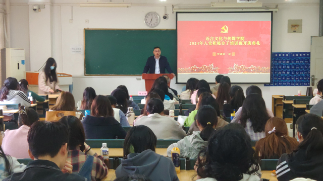 4月10日中午,語言文化與傳媒學院在5棟309教室舉行2024年入黨積極分子培訓班開班儀式暨黨課第一講。校黨委組織部副部長、離退休工作處副處長馬保衛,院黨委書記儲昭輝,院黨委副書記、紀委書記張愛萍,院團委副書記劉政,黨校班主任柳守志和2024年入黨積極分子參加開班儀式。儀式由黨校班主任柳守志主持。