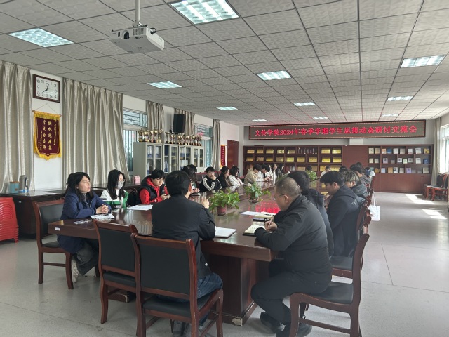 為進一步加強對學生思想動態(tài)的了解,精準化做好學生思想政治引導工作 ,3月12日中午12:05,語言文化與傳媒學院各班班長和思政委員參與了學院召開的2024年春季學期學生思想動態(tài)研討交流會。本次交流會由語言文化與傳媒學院團委副書記劉政主持,語言文化與傳媒學院黨委副書記張愛萍、副院長殷明明、教學辦主任章衡和學工辦主任顧盼盼出席。