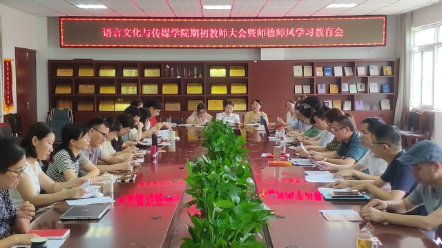 8月30日上午,語言文化與傳媒學院在五棟二樓會議室舉行了全院教師大會暨期初師德師風學習教育會,學院領導班子成員及全體教職工參加會議。
